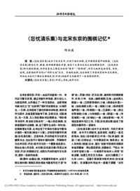 《忘忧清乐集》与北宋东京的围棋记忆_何云波